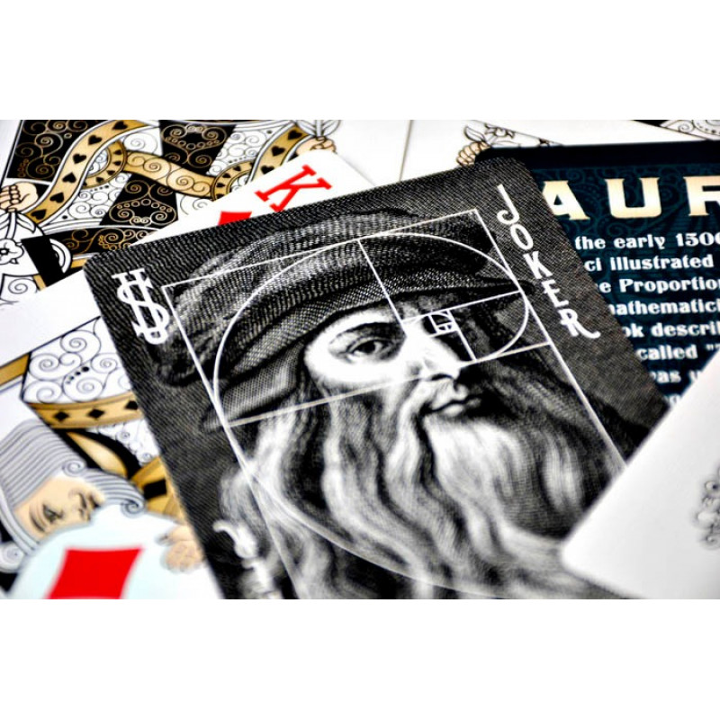 Bicycle Aureo Black destesi, Rönesans sanatında güzelliğin temel unsuru olan Altın Oran (Golden Ratio) kavramından ilham alır. Zarif siyah kutu üzerinde kullanılan detaylı altın varaklı kabartma ve girdap desenleri bu matematiksel estetiği göz alıcı bir sanatsal ifadeye dönüştürür.
