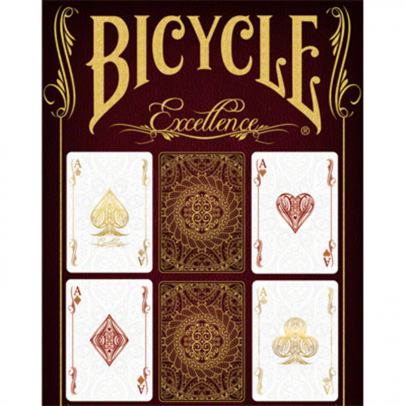 Bicycle Excellence Oyun Kartları, US Playing Card Company tarafından üretilen lüks bir kart destesidir. Paris'in zarif atmosferinden ilham alarak tasarlanmıştır ve bu şehri simgeleyen sofistike bir zarafeti yansıtır. Destenin arka yüzü, derin altın metalik mürekkeplerle işlenmiş zarif bir guilloché deseniyle süslenmiştir. Kutusu ise kırmızı vellum kağıttan üretilmiş olup, altın yaldız baskı ve kabartmalı detaylarla zenginleştirilmiştir. Kartlar, USPCC tarafından üretilen, ince dokulu ve Magic Coating kaplamalı özel bir stok üzerine basılmıştır, bu da onlara ipeksi bir his ve dayanıklılık kazandırır. Sınırlı sayıda üretilen bu deste, koleksiyoncular ve kart sanatçıları için değerli bir parçadır.