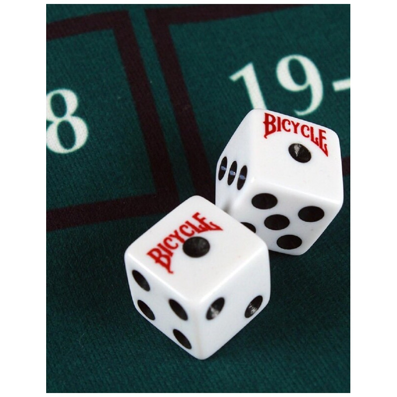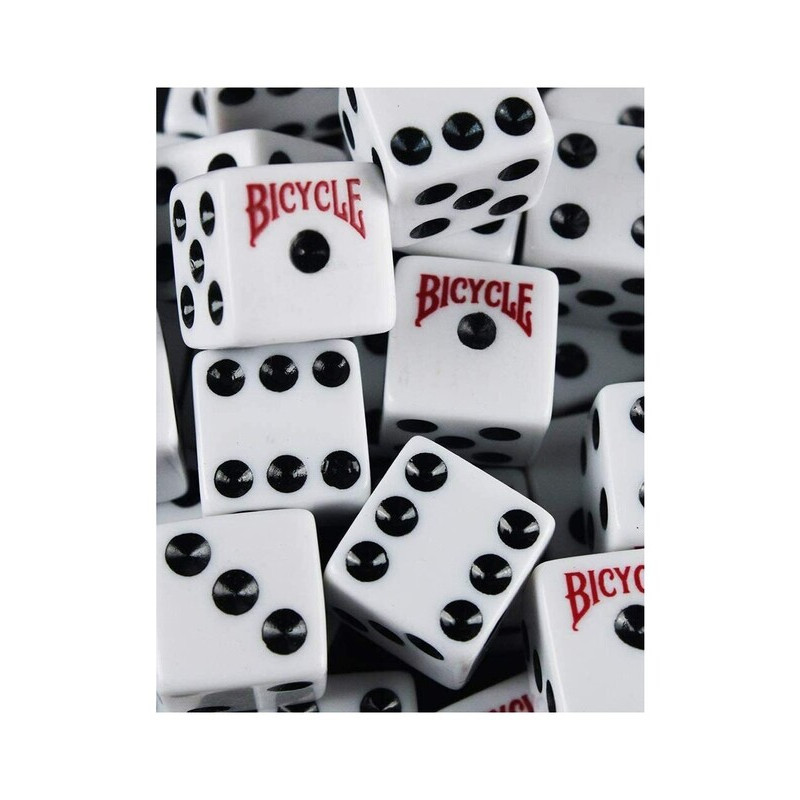 Bicycle marka 10'lu oyun zarı paketi. 16mm boyut, 1. sınıf kalite, Amerikan üretimi zarlar.Bicycle oyun zarı 16 mm lik keskin köşeli beyaz renkte ve plastikten yapılma kaliteli zar.10 lu pakettedir.