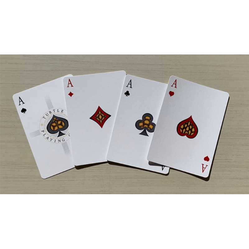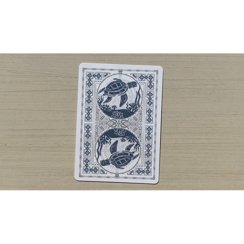 Bicycle Turtle (Sea) Playing Cards, USPCC tarafından üretilmiş olup, poker boyutunda ve klasik stok kullanılarak üretilmiştir. Hava yastıklı baskı (air-cushion finish) ve geleneksel kesim (traditional cut) özellikleriyle, kartların rahatça karıştırılmasını ve uzun süreli kullanımını sağlar.