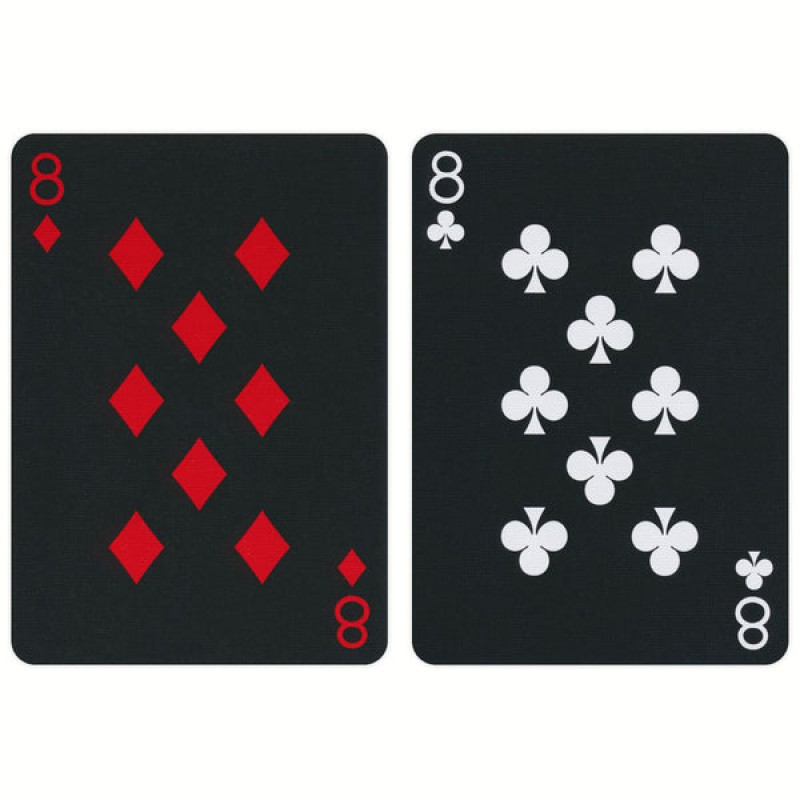 Üretici: Ellusionist, The United States Playing Card Company (USPCC) tarafından basılmıştır Malzeme: Premium karton, Hava Yastığı (Air-Cushion) bitiş Kart sayısı (ve içeriği): 52 standart kart + 2 Joker + gaff kartları (içerik değişebilir) Boyut (yaklaşık mm): 63 x 88 Ağırlık (yaklaşık gr): 100 Renk: Siyah, Beyaz, Kırmızı