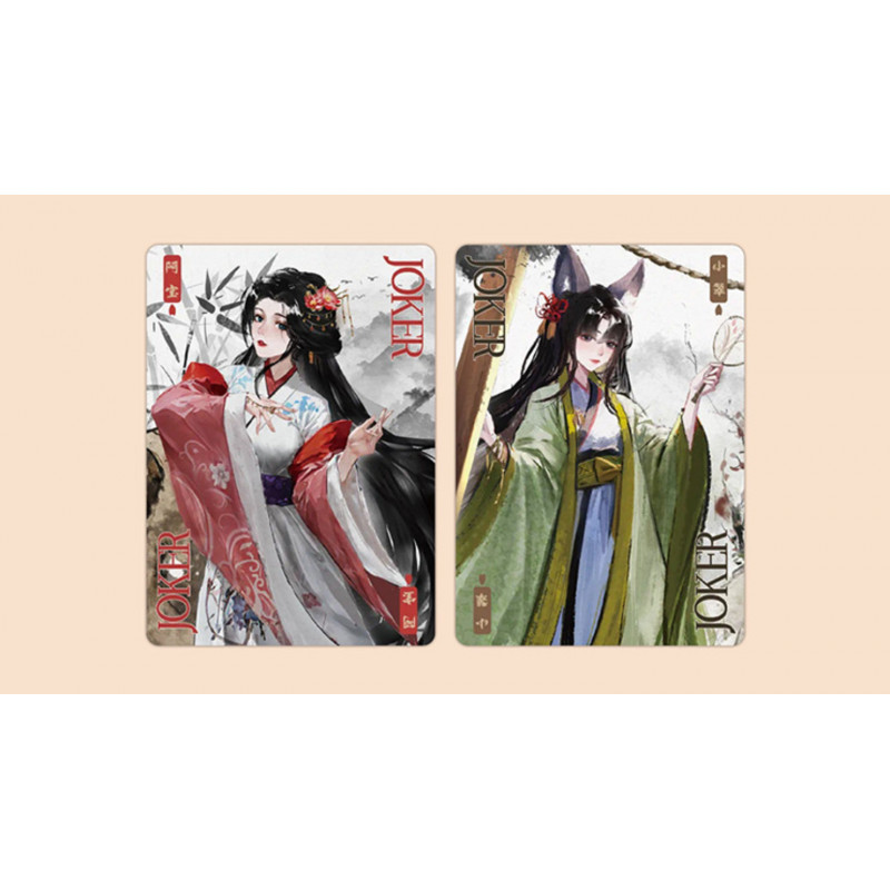 Mountain Demon Gilded Playing Cards, TCC Presents tarafından tasarlanmış ve Strange Tales Scroll serisinin bir parçası olarak sunulmuştur. Bu destede, geleneksel Çin sanatının zarif çizgileriyle modern estetik bir araya getirilmiştir. Kartların arka yüzeyinde, dağlık erguvan çiçekleri arasında yükselen yoğun sis ve uçan kuşlar gibi fantastik öğeler yer alırken, kart yüzlerinde antik zarafeti yansıtan yeni illüstrasyonlar bulunmaktadır. Bu tasarım, klasik Çin duygusunu derinlemesine hissettiren bir atmosfer yaratmaktadır.