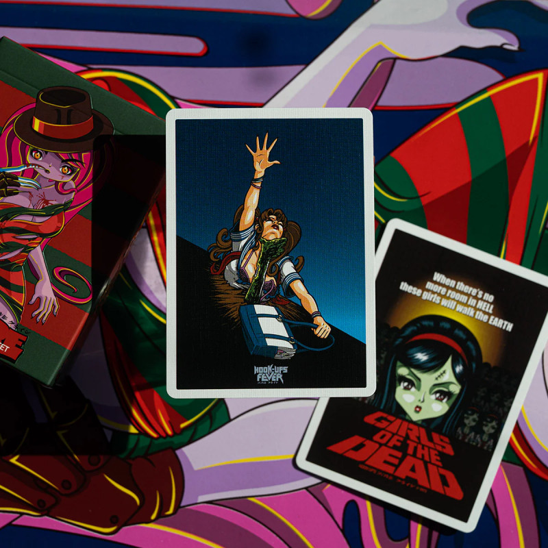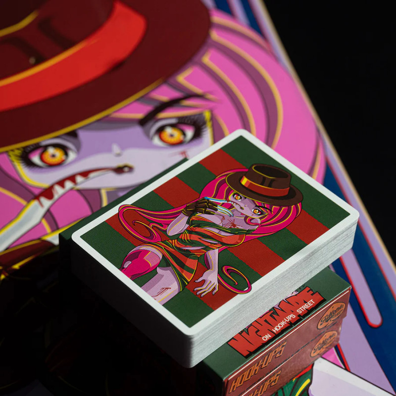 Etiketler: Nightmare on Hookups, Street Standard, özel tasarım deste, korku sanatı, kabartmalı kutu, UV detaylar, koleksiyon kartı