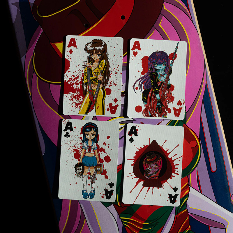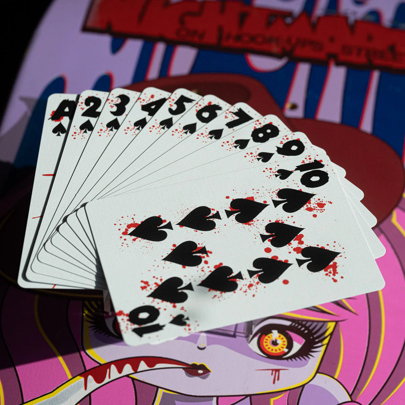 Fulton's Playing Cards’in özel destesi Nightmare on Hookups – Street Standard, korku ile estetiği bir araya getiriyor. Hookups Skateboards’ın 30. yıldönümüne özel bu sınırlı üretim deste, kan sıçramalı sayılar ve ürkütücü güzellikte figür kartlarla donatılmış tamamen özel tasarım bir deneyim sunuyor. Jeremy Klein ve Brad Fulton tarafından tasarlanan kutusu; UV vurgular, derin kabartma ve kesimli “slashed” kenar detaylarıyla dikkat çekiyor. Çin'de kaliteli cardistry kağıdına basılmış bu deste, hem oynanabilirlik hem görsel şov isteyen kullanıcılar için ideal.