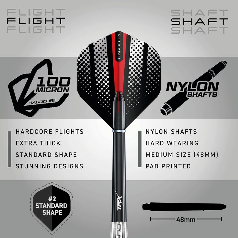 Üretici: Red Dragon Darts Malzeme: %80 Tungsten Ağırlık: 22g Gövde Uzunluğu: 55.9mm Gövde Genişliği: 7.5mm Gövde Şekli: Özel, Ön Ağırlıklı (Specialist, Front-weighted) Tutuş Bölgesi: Ön Tutuş Teknolojisi: Çoklu Halkalı Tutuş (Multi-Ring Grip) Uç Tipi: Siyah yüksek gerilimli çelik uç Paket İçeriği: 3 adet Swingfire 1 dart gövdesi, 3 adet VRX polycarbonate şaft (kısa), 3 adet Hardcore extra thick flight