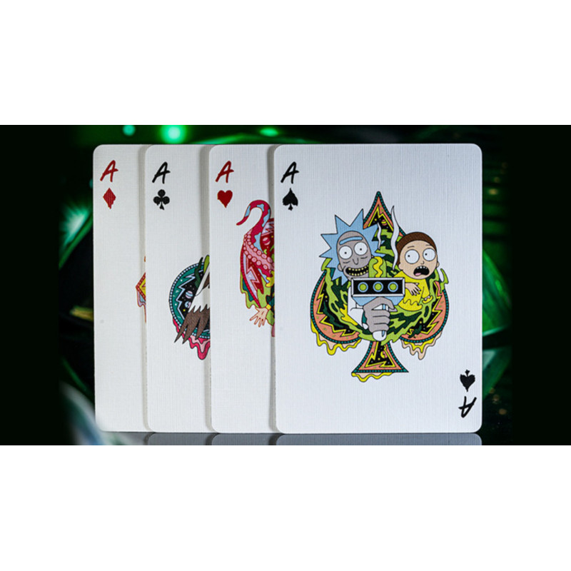 Rick & Morty Playing Cards, popüler animasyon dizisi Rick and Mortyden ilham alarak tasarlanmış, her yönüyle özelleştirilmiş bir kart destesidir. Bu premium deste, hem koleksiyoncular hem de kart oyunları tutkunları için mükemmel bir seçenektir. Her bir kart, dizinin karakterleri ve ikonik anlarıyla bezeli, canlı ve psikedelik bir tasarıma sahiptir. Deste, Amerika Birleşik Devletleri'nde FSC sertifikalı kağıt kullanılarak üretilmiştir ve çevre dostu mürekkep ve nişasta bazlı laminasyon ile kaplanmıştır. Her kutu, özel bir "Pickle Rick" sticker ile mühürlenmiştir, bu da desteye ekstra bir koleksiyon değeri katmaktadır.