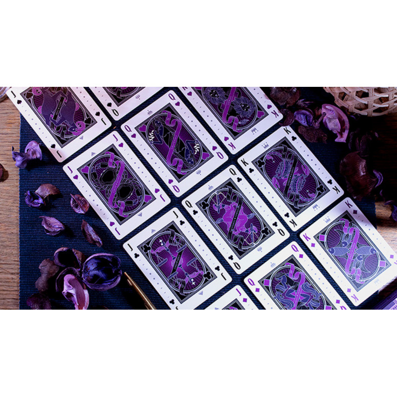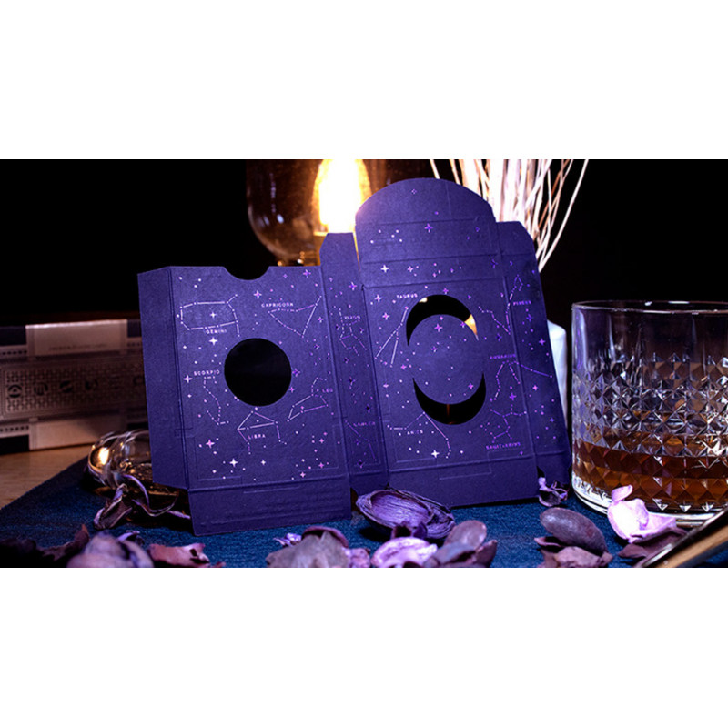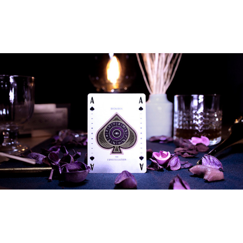 Deckidea tarafından tasarlanan The Constellation Majestic Playing Card, gökyüzünün gizemini ve burçların büyüsünü kart dünyasına taşıyan özel bir destedir. Mystique Purple versiyonu, koyu mor zemin üzerine mor folyo baskı ile zarif bir görünüm sunar. Kutu tasarımında yer alan kabartmalar, dokusal deneyimi zenginleştirirken, UV görünmeyen mürekkep ile yapılan detaylar, sadece UV ışığı altında belirginleşerek gizemli bir atmosfer yaratır.