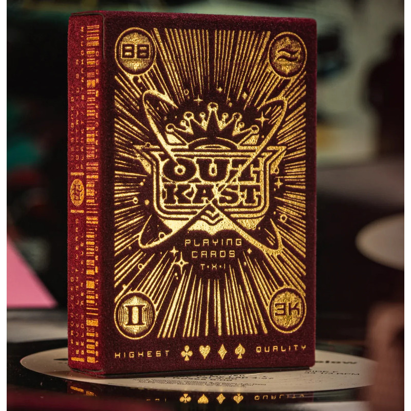 Atlanta’lı ikonik hip-hop ikilisi Outkast’in mirasına modern bir saygı duruşu niteliğinde hazırlanan bu premium kart destesi, kendine has sanatsal dil ve zarafet barındırır. Kutusu, kırmızı kadife yüzeyle kaplanmış ve altın varak detaylarla süslenmiştir; doğrudan “Red Velvet” şarkısından ve Stankonia döneminde André 3000 ile Big Boi’nin taktığı altın zincirlerden ilham alır.