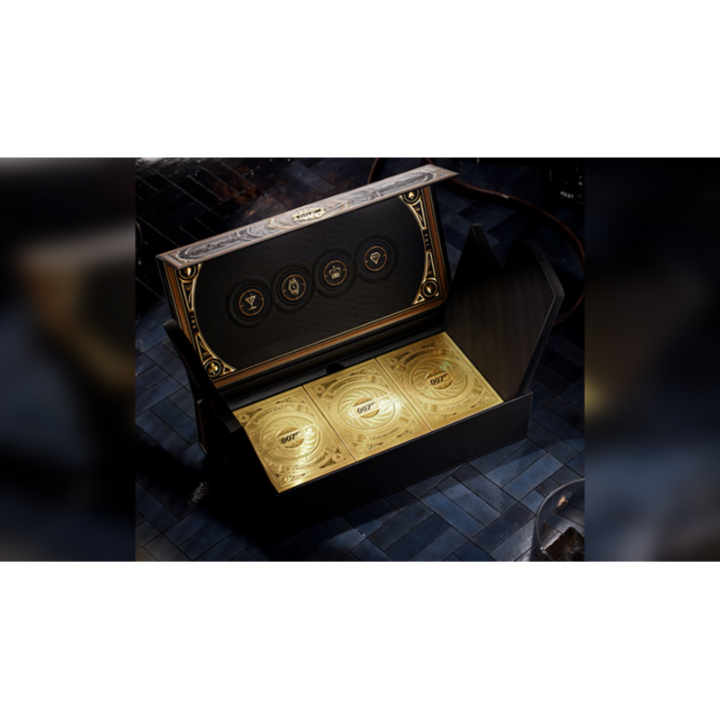 Üretici: theory11 İçerik: 3 adet Altın Folyolu 007 Oyun Kartı Destesi, 1 adet masif pirinç 007 tükenmez kalem Kutu: Gizli bölmeli, özel mekanizmalı, siyah ve altın folyo işlemeli koleksiyon kutusu Malzeme (Kartlar): FSC sertifikalı kağıt Basım: The United States Playing Card Company (USPCC) Boyut (yaklaşık mm): 63 x 88 mm (Standart Poker boyutu) Renk: Siyah, Altın