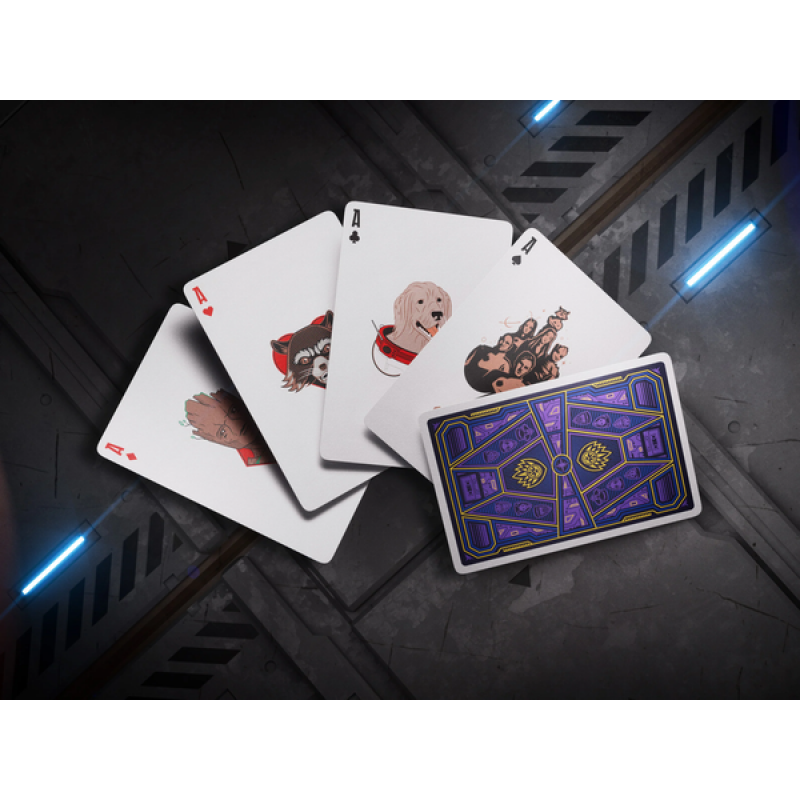 Kartların her biri, Guardians of the Galaxy evreninden en sevilen karakterleri hayata geçiren tamamen özel çizimlere sahiptir. Star-Lord, Gamora, Drax, Mantis, Rocket ve Groot gibi kahramanların yanı sıra Nebula ve daha birçok karakter, destenin saray kartlarında, As'larında ve Joker'lerinde yer alır. Tasarımlar, karakterlerin özünü ve ekrandaki kişiliklerini yansıtan detaylarla doludur. As kartlarında Groot, Cosmo the Spacedog ve Rocket gibi ikonik figürler öne çıkarken, saray kartları takımı kahramanlar ve Ronan the Accuser, Ego, Yondu ve High Evolutionary gibi kötü karakterler arasında paylaştırılmıştır.Bu zengin karakter yelpazesi, her oyun seansını galakside yeni bir maceraya dönüştürür.