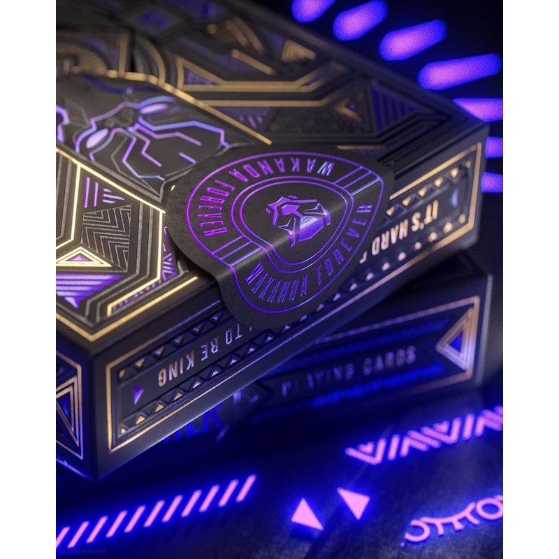 Theory11 Black Panther Oyun Kartları, Marvel Studios'un Black Panther evreninden ilham alarak tasarlanmış premium bir deste sunuyor. Bu özel koleksiyon, King T’Challa, M’Baku, Okoye, Killmonger gibi karakterleri içeriyor; ayrıca Wakanda Forever filminden Namor, Attuma, Namora, Ironheart ve yeni Black Panther Shuri de kartlarda yer alıyor .