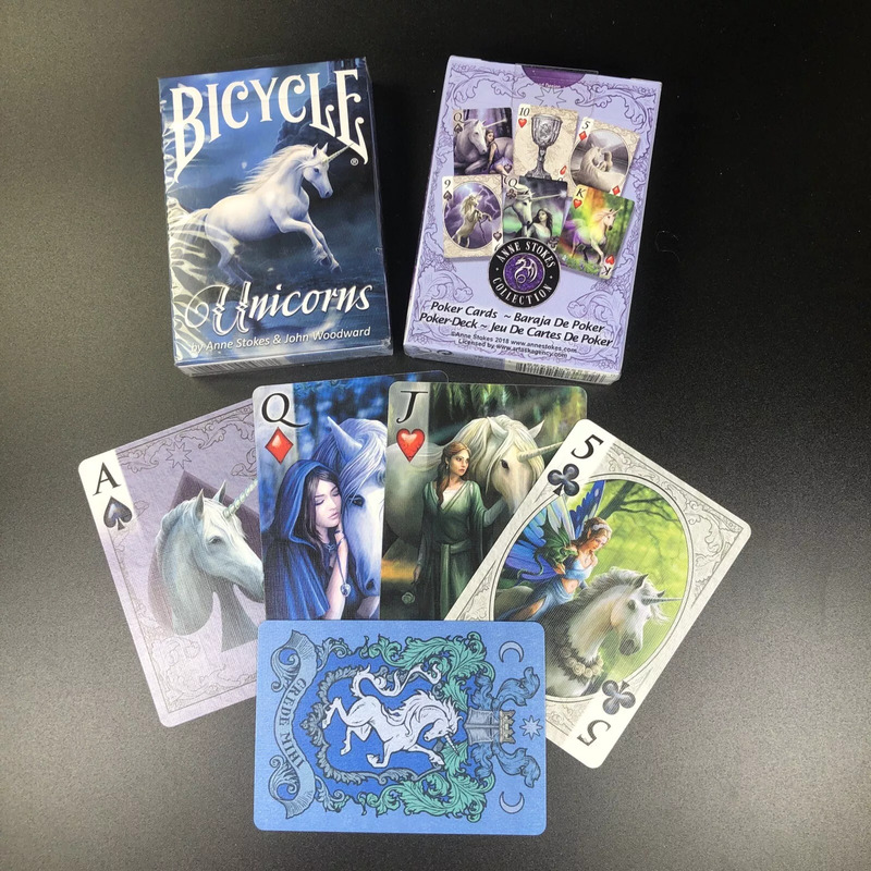 Etiketler: Unicorn, Anne Stokes, Bicycle, premium deste, fantastik sanat, koleksiyon kartları, Air‑Cushion