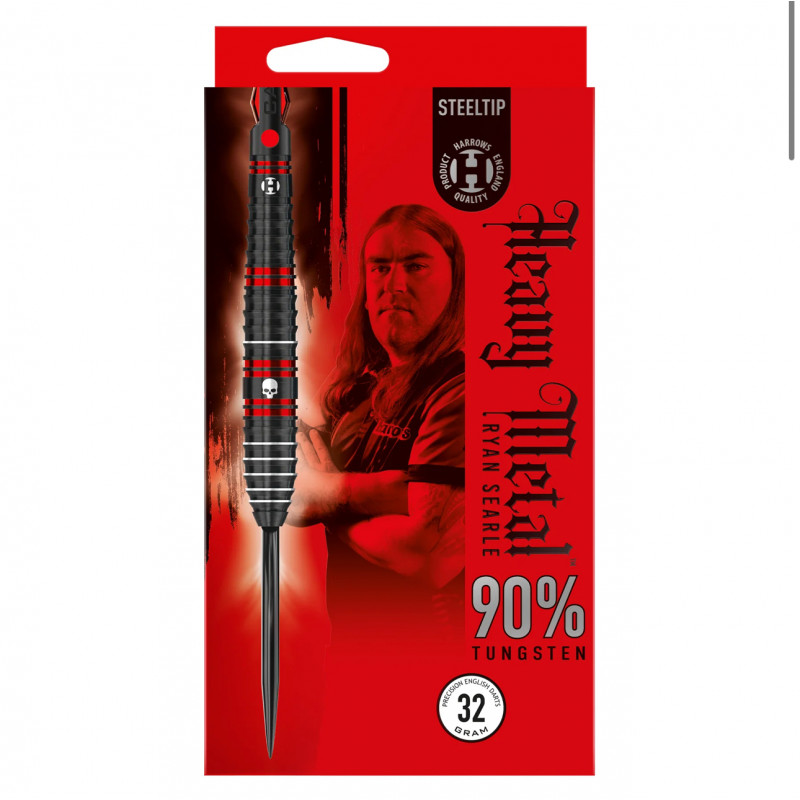 Üretici: Harrows Oyuncu: Ryan Searle Malzeme: %90 Tungsten Kaplama: Siyah Titanyum Nitrür Gövde Şekli: Özel "Heavy Metal" Profili (Önü Konik, Arkası İçbükey) Ağırlık: 23g Gövde Uzunluğu: 51mm Gövde Genişliği: 6.9mm Tutuş Teknolojisi: Halkalı ve Yatay Frezeleme Ağırlık Eşleştirme: +/- 0.05g Uç Tipi: Çelik Uç (Steel Tip) Paket İçeriği: 3 adet Ryan Searle dart gövdesi, 3 adet Carbon ST şaft (midi), 3 adet 100 mikron Ryan Searle imzalı flight