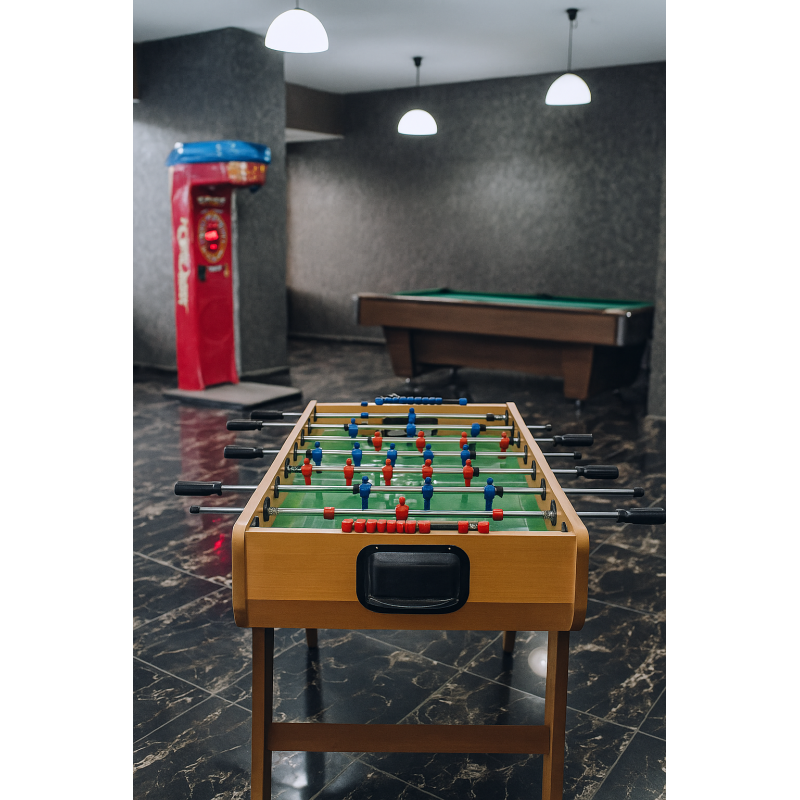 Yüksek kaliteli malzemelerden üretilen langırt masamız, uzun ömürlü kullanım sunar. Ergonomik tutacakları sayesinde rahat bir kavrayış sağlarken, özel tasarlanmış oyuncu figürleri ve pürüzsüz oyun yüzeyi ile topa mükemmel kontrol imkanı verir. Hızlı paslar, keskin şutlar ve stratejik savunmalarla rakibini yenmenin keyfini yaşa. İster acemi ol ister deneyimli bir langırt ustası, bu masa her seviyeden oyuncuya hitap eder.