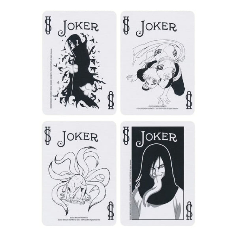 Kartlarda Naruto, Sasuke, Sakura, Kakashi, Jiraiya, Pain gibi karakterlerin yanı sıra, Itachi, Gaara, Kurama ve Orochimaru gibi ikonik kötü karakterler de joker kartlarında yer alıyor. Her kartta kunai, sharingan, ramen kasesi gibi ninja araçlarıyla süslenmiş detaylar bulunuyor, bu da desteği hem işlevsel hem de koleksiyonluk hale getiriyor.