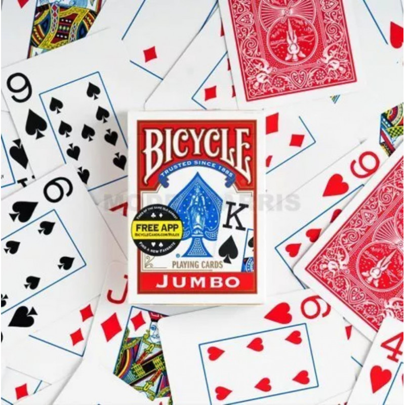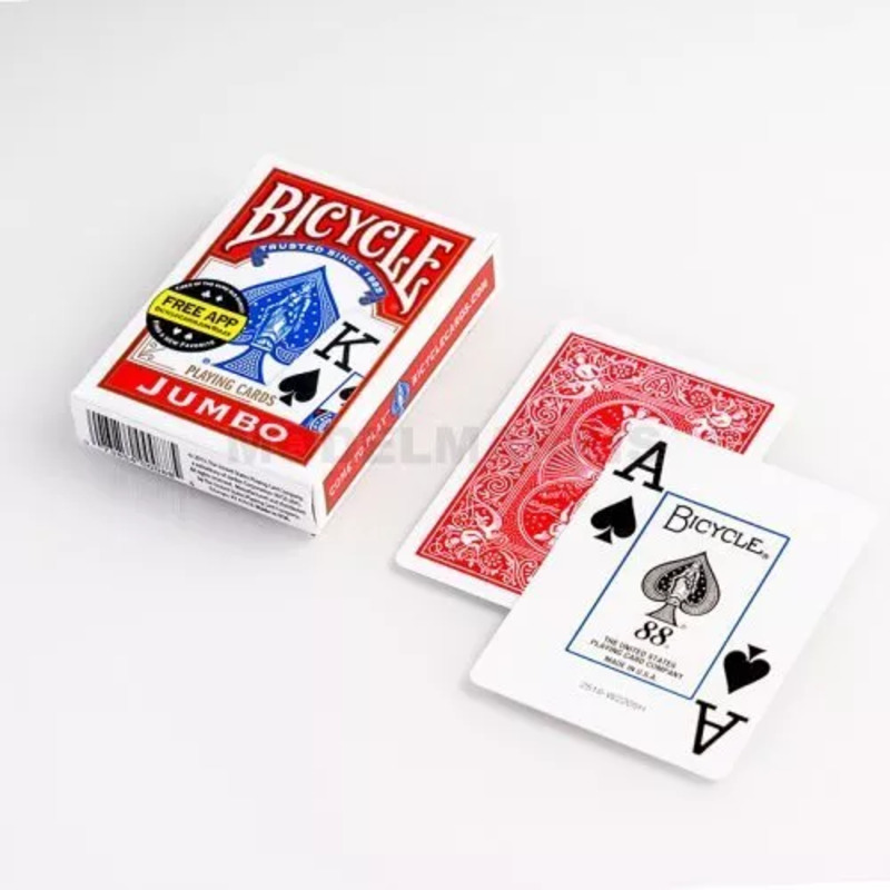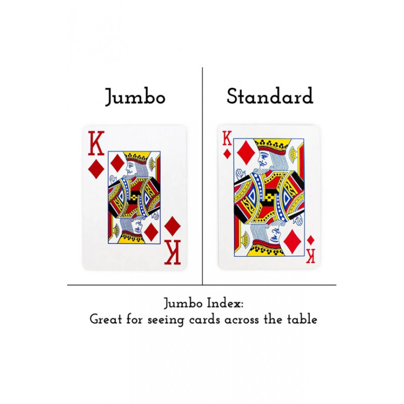 Oyun kartı dünyasının kalite standardını belirleyen Bicycle, klasik Rider Back tasarımını, maksimum okunabilirlik ve kullanım kolaylığı için tasarlanmış Jumbo Index (Büyük Boy İndeks) ile birleştiriyor. Bu kırmızı deste, özellikle kartlarındaki sayı ve sembollerin masanın her köşesinden rahatça görülebilmesini isteyen oyuncular için geliştirilmiştir. Poker gibi topluluk kartlarının paylaşıldığı oyunlardan, görme güçlüğü çeken oyunculara ve kart oyunlarını yeni öğrenen çocuklara kadar geniş bir kitleye hitap eden bu deste, işlevselliği ve klasik Bicycle kalitesini bir araya getirir. "International" özelliği, kartların dört köşesinde de küçük birer indeks bulunması anlamına gelir. Bu 4-köşeli indeks (4-Pip), özellikle Canasta gibi çok sayıda kartın elde tutulduğu oyunlarda, elinizi hafifçe aralayarak kartlarınızı kolayca görmenizi sağlar.