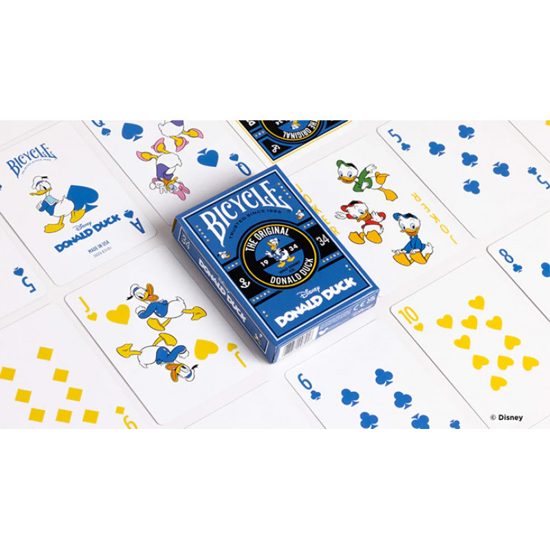 Destenin sanatsal çekiciliği, her detayında kendini gösterir. Kartların sırt tasarımı, Donald'ın imzası niteliğindeki denizci şapkasından ilham alan motiflerle süslenmiş, lacivert ve altın tonlarında simetrik bir desene sahiptir. Bu zarif tasarım, hem klasik Disney estetiğini hem de Bicycle markasının kalitesini yansıtır. Maça Ası, destenin en özel kartı olarak, yine Donald'ın ikonik şapkasını ve papyonunu merkezine alan büyük ve gösterişli bir tasarımla öne çıkar. Deste, koleksiyon değerini anında artıran, zengin mavi ve altın varak (gold foil) detaylarla süslenmiş, kabartmalı (embossed) özel bir kutu içinde sunulur. Kutunun ön yüzünde, kollarını kavuşturmuş klasik huysuz pozuyla Donald Duck'ın kendisi yer alır ve bu, onu her koleksiyonerin rafı için mükemmel bir parça haline getirir.