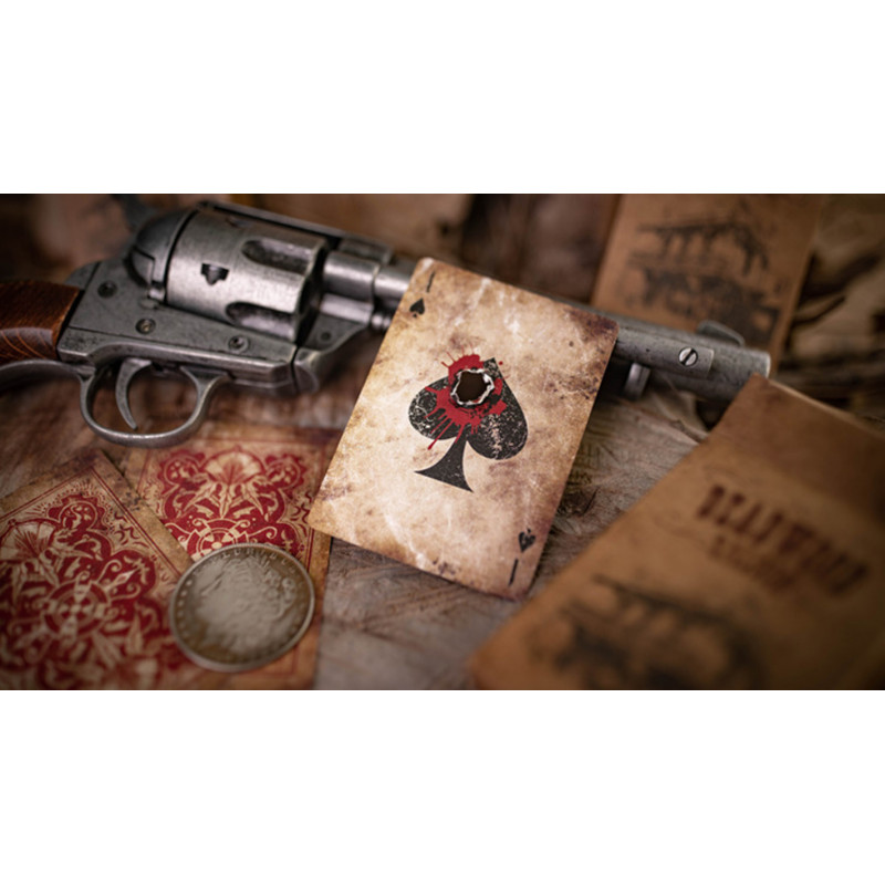 Matthew Wright & Mark Bennett tarafından tasarlanan Deadwood Marked (Kırmızı) destesi, Vahşi Batı ruhunu ve efsanevi “Dead Man’s Hand” temasını modern performansla buluşturuyor. Autentik mumlu hisli yüzeye sahip kartlar, her kartın farklı biçimde yaşlanarak benzersiz olması sağlanmış olup özel kraft kağıt kutusunda sunuluyor.