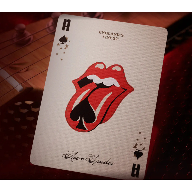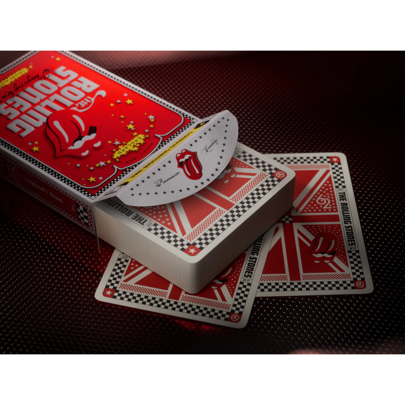 Kart destesi, İngiliz rock efsanesinin sahne enerjisini yansıtmak üzere tasarlandı. Her bir kart, grup üyelerini (örneğin Mick Jagger, Keith Richards ve diğerleri) temsil eden özel çizimlerle donatıldı; özellikle court kartlar ve Joker/Ace kartları tamamen özgün sanat eserleriyle süslenmiştir. Ayrıca kartların arka yüzünde dikkat çeken desenlerle birlikte kapak ve tasarım elemanlarında kabartma (embossing), sıcak folyo basım (hot-stamping) ve premium mat kağıt gibi detaylı işçilik öne çıkar