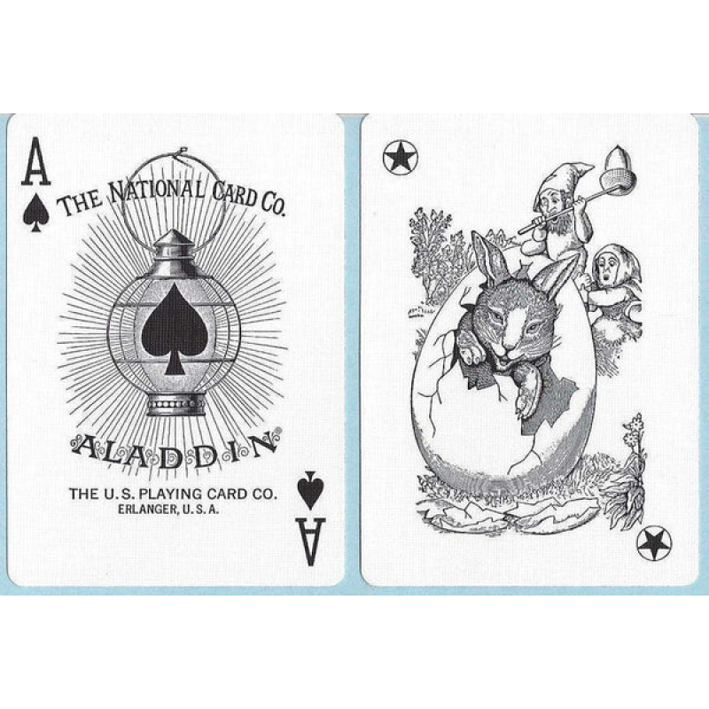 1001 Aladdin Oyun Kartları, ilk olarak 1885 yılında National Card Company tarafından üretilmeye başlanmış ve daha sonra United States Playing Card Company (USPCC) tarafından devralınmıştır. Kırmızı renkli arka tasarımı ve zarif fevkalade desenleriyle dikkat çeker. Kartlar, "smooth finish" (düz yüzey) özelliğiyle üretilmiştir, bu da onları sihir gösterileri ve kart flourişleri için mükemmel bir seçenek yapar. Klasik 52 kart ve 2 joker içerir. Poker boyutunda (~63,5 × 88,9 mm) olan bu deste, her seviyedeki kart oyuncusu için uygundur. USPCC'nin Cincinnati, Ohio'daki eski tesislerinde üretilmiştir.
