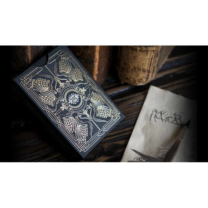 Üretici: Noir Arts (NPCC) Malzeme: Almanya'da üretilmiş yüksek kaliteli kart stoğu, keten dokulu kaplama (premium linen finish) Kart sayısı (ve içeriği): 52 iskambil kartı + 3 joker Boyut (yaklaşık mm): (Standart Poker boyutu için genel bir rakam belirtmek gerekirse) 63 x 88 mm Ağırlık (yaklaşık gr): (Standart bir deste için genel bir rakam belirtmek gerekirse) 100 gr Renk: Siyah, Altın, Gümüş Ek Özellikler: Altın ve gümüş folyo detayları, iç folyo kaplama, kabartmalı kutu, özel mühür