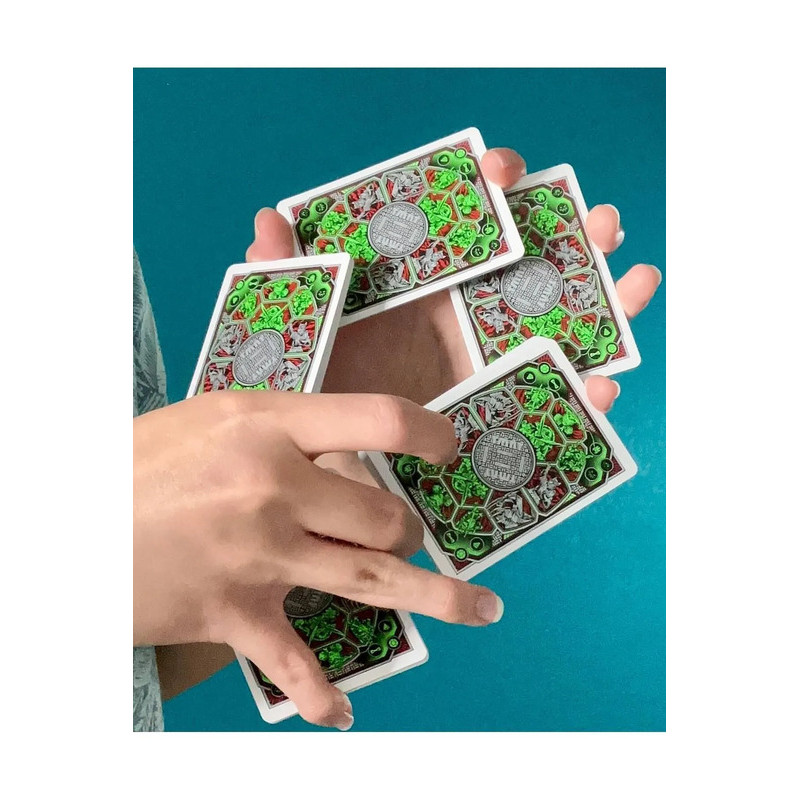 Bu özel tasarım Teenage Mutant Ninja Turtles (TMNT) oyun kartları, theory11’in ustalıklı işçiliğini yansıtan bir koleksiyon parçasıdır. New York’un yeraltı kanalizasyonlarında gerçekleşen bir maceraya katılın; Leonardo, Michelangelo, Donatello ve Raphael, canlı ve detaylı illüstrasyonlarla tüm destede yer alıyor. Siyah zemin üzerinde yeşil, kırmızı ve gümüş folyo detaylarla bezeli kart kasası, hem görsel bir şölen sunar hem de dokunsal olarak dikkat çeker. Bu materyaller, sürdürülebilir ormanlardan elde edilen FSC sertifikalı kağıt, bitkisel bazlı mürekkepler ve nişasta bazlı laminatlarla buluşarak doğaya saygılı bir deneyim sağlar. Kartlar, Amerika’da, United States Playing Card Company tarafından özenle basılmıştır; oynanabilirlikten ödün vermeden estetik bir koleksiyon sunar. Destede, 52 standart kart, iki joker ve iki teorik TMNT temalı özel kart olmak üzere toplamda 56 kart bulunur. Kart boyutu yaklaşık 63 × 88 mm, tüm deste yaklaşık 92 × 65 × 18 mm ve ağırlık yaklaşık 98 gr’dır. Bu kartlar, hem oyun severlere hem de koleksiyonculara hitap edecek nitelikte, zamansız bir TMNT memorabilia parçasıdır.